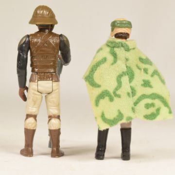 Star Wars - x2 original vintage Kenner / Palitoy made action figures with original card backs. Includes: Lando Calrissian (Skiff Guard Disguise) - 100% complete with original weapon and helmet. LFL 83, HK COO. And Princess Leia Organa (In Combat Poncho) - including cape and helmet, but lacking blaster. LFL 84 no COO. Both supplied with their original Return Of The Jedi card backs. Figures VG to VG+.