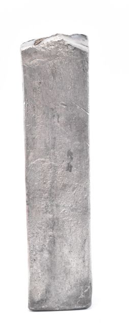 A maritime Dutch East India Company V.O.C. (Vereenigde Oost-indische Compagnie ) silver ingot bar 1739. The silver ingot was salvaged from the shipwreck of the Rooswijk in 2004. The ingot having V.O.C conjoined stamp with A for Amsterdam, together with assay masters stamp of a rampant goat. Measures approx. 3.2cm x 16.2cm x 3.9cm. Weight approx. 1970grms, 46.0 oz, 0.00127946 dwt. Salvage tag number: RK04A0314