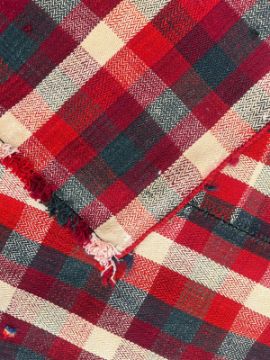 An early 20th century South West Persian Islamic Jajim Kilim hand woven floor carpet rug. The carpet having a checked pattern in cream, red and black colourways with central seam.