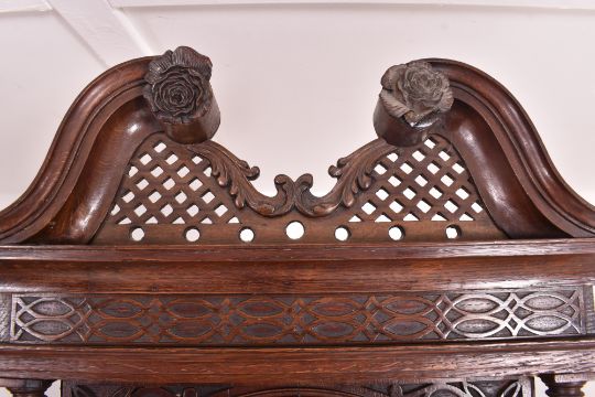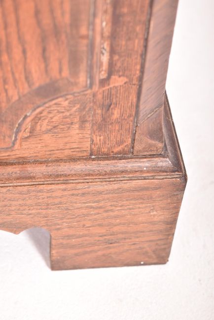 A 19th century George III oak-cased longcase grandfather clock by Skerratt Aftbury. The eight-day clock having a circular brass dial with a Roman numeral chapter ring and faceted hands. All housed within an oak case having a swan neck pediment hood with all raised on bracket feet supports. With two weights. No pendulum present.
