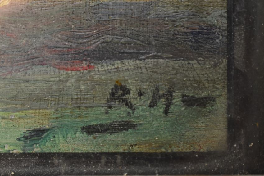 Robert Hope RSA (Scottish, 1869-1936) - Golf Course - an oil on board painting. Signed with initials lower right hand corner. Framed & glazed in gilt wood frame.