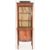 An Edwaridan inlaid mahogany display cabinet. The upper section having a glazed cabinet with shelves set within over a bow fronted cupboard base with inlaid decorations. All raised on tapering supports.