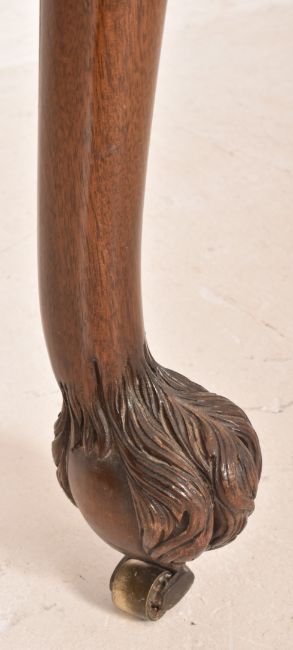 An Adam Revival 19th century ebonised serving table. The table having a dentil carved gallery back over a serpentine front top. Bank of three drawers to front with brass swing handles. All raise don cabriole supports with carved foliate embellishments. Brass castors to ends.