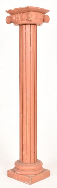 A 20th century Classical style plaster column. The column having a Corinthian style capital over a reeded column raised on a circular foot upon a square base.