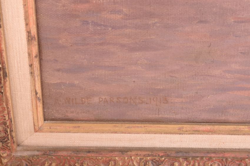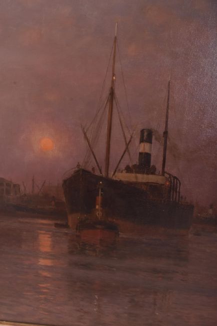 Arthur Wilde Parsons (British, 1854-1931) - Ship Leaving Bristol - an early 20th century oil on canvas painting depicting Bristol Harbour with ship leaving docks. Signed and dated lower left, date appears to read 1913 but last number slightly illegible. Framed.