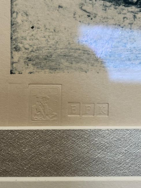 ARTISTS RE-SALE RIGHT. Buyers of the re-sold art of living artists will be charged the royalty where applicable. Currently this is 4% on any item sold at 1000 Euros or over, diminishing from 50,000 Euros. VAT is not applicable on this charge. Further details can be obtained from artistscollectingsociety.org.