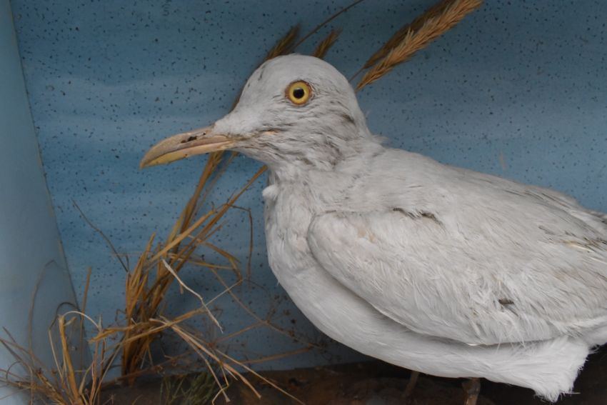Taxidermy. An early 20th century Edwardian cased taxidermied Arctic Ivory Gull (Pagophila eburnea) by H. N. Pashley, Cley near the Sea, Norfolk. The gull modelled in naturalistic surroundings, presented in contemp. ebonised & glazed case. Label to verso, dated 1907. Lacking glass frontage.