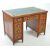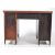 An early 20th century Edwardian mahogany twin pedestal writing desk. The desk raised on twin pedestals with tramline carved details and brass swing handles to drawers. Having single drawer above central kneehole, and leather skiver to top.