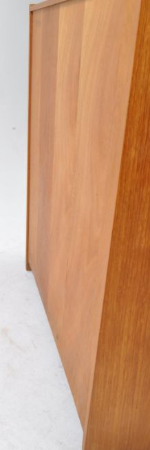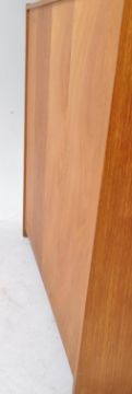 Remploy Furniture - A vintage mid 20th century teak bureau writing desk. The desk raised on an inset plinth base. Having a single drawer and a cupboard to base. Featuring fall front bureau door to top. Measures approx: 107x92x41cm
