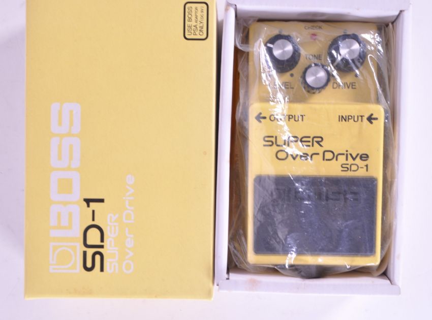 Boss SD-1 super over drive signal processor electric guitar pedal. Housed in an original branded box. Circa 1980s