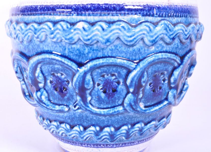 Fratelli Fanciullacci - A retro mid 20th century Italian studio art pottery vase. The vase of baluster form with a lipped rim over two handles and moulded linked decoration below. Blue and white colourway with Italy mark to the base. Measures approx. 26cm x 21cm diameter.