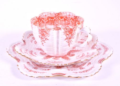 Wileman for Shelley - Late 19th century porcelain cup, saucer and side plate. Trio in white and orange colourway with maker's stamp to underside.