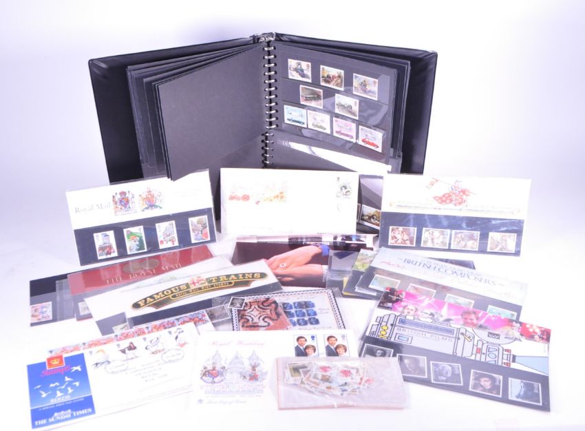 A large collection of late 20th century presentation packs, including themes such as Arthurian Legend, British Films, The Royal Mail, Famous Trains, Insects, British Composers, The Civil War and many more. With an approximate face value of £190. Housed within an album.