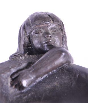 Tom Greenshields (1915-1994) - Bird Bath - A 20th Century cast resin bronzed statue / figure in the form of a nude lady resting her arms upon a large bird bath. Signed to base.
