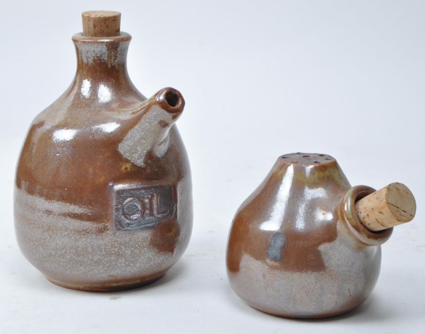 The Friar Aylesford, England - Large extensive collection of vintage 20th century pottery ceramic stoneware tableware tea service set. Including large water / teapots, twist design goblet / drinking cups, water jug, oil dispenser, cups, mugs and other examples. Some with impressed stamps to underside.