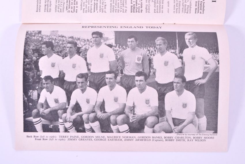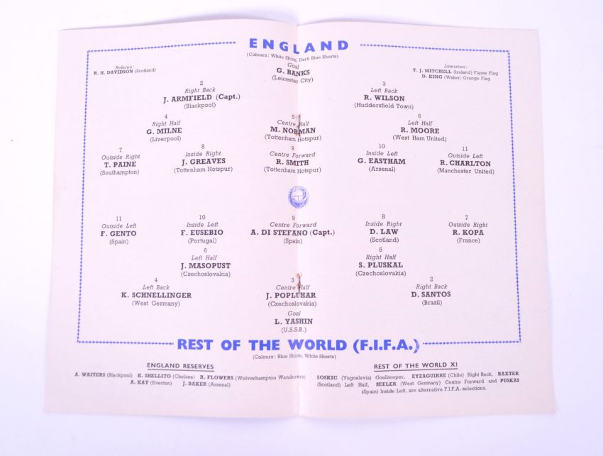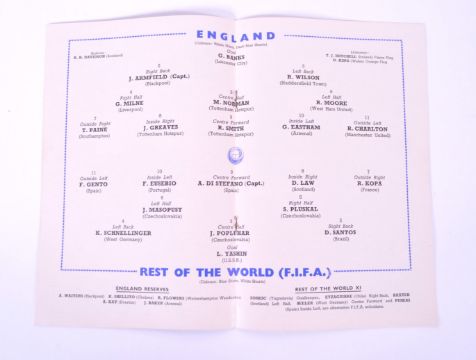 Collection of three 1960s world cup football programmes, including a 1963 'England V Rest of The World' Wembley football programme, a 1966 World Championship England souvenir programme and a 1966 World Championship Final 'England V West Germany' Empire Stadium Wembley souvenir programme. Largest programme measuring approx. 23cm x 18cm.
