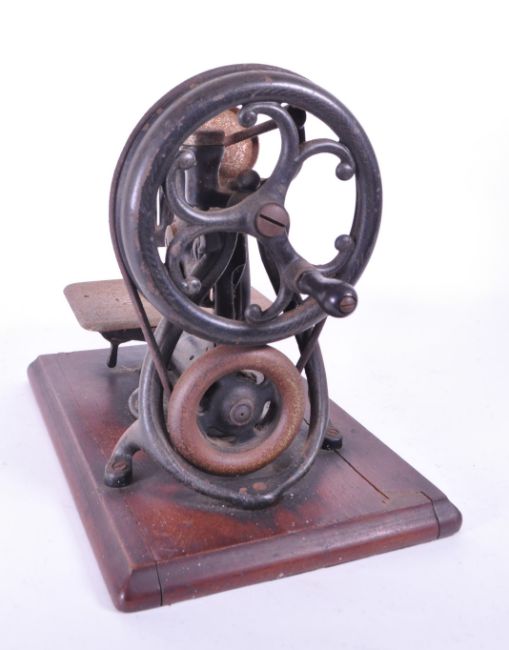 Willcox & Gibbs - An early 20th century Willcox & Gibbs hand crank sewing machine. The machine on a mahogany base. Having iron frame. Marked made in USA.