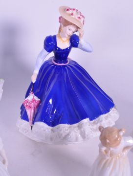 Royal Doulton - Collection of ten mid to late 20th century porcelain figures of ladies. Examples including 1957 Southern Belle HN 3174, 1992 Figure of The Year Mary HN 3375, 1993 Figure of The Year Jennifer HN 3447, 1998 Nicole HN 4112, and more. All unboxed, with makers marks to the underside of each piece. Largest measuring approx. 22cm x 18cm x 18cm.