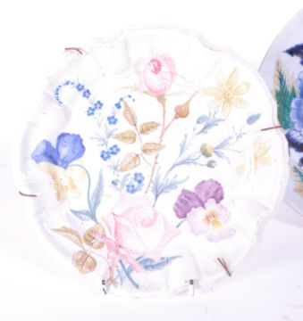 Three 19th century Chinese ceramic plates. Two having floral transfer print design and scalloped edge, together with a blue and white example.