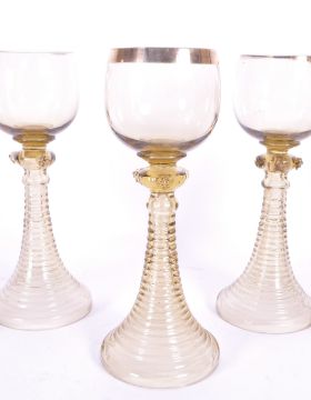 A set of six Swedish 1980s bee hive drinking glasses. Ribbed tapering base with rose finials to side with bowl top.