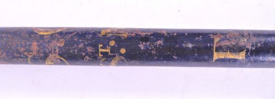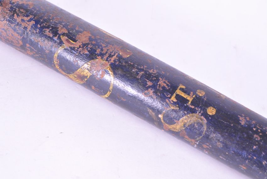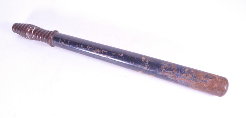 19th century black painted turned wood Police truncheon with gilt lettering 'S C' Special Constable, with ribbed grip, marked St M and E.