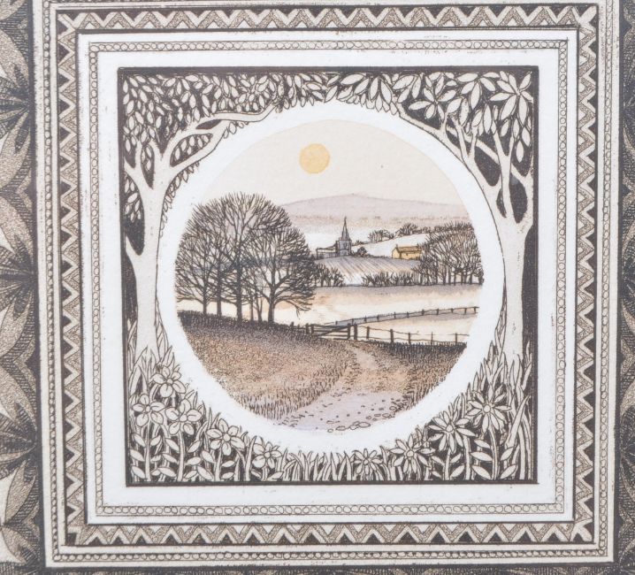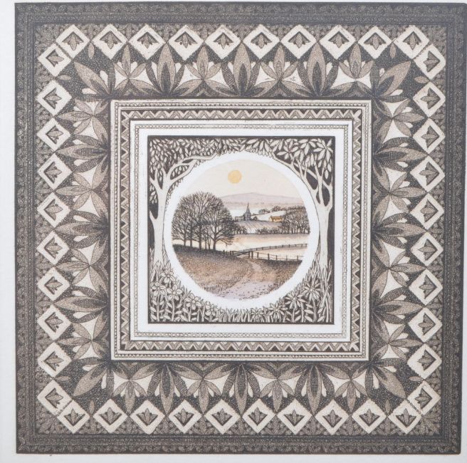 Kathleen Caddick - Late 20th century 'A Countryside View' monochrome etching limited edition number 12/250. Signed in pencil by the artist underneath the artwork. Framed and glazed, measuring approx. 41cm x 41cm.Kathleen Caddick trained at High Wycombe College of Art and graduated with NDD Hons in painting. She worked as a freelance designer and art teacher whilst she raised her son, and later returned to run a graphics design studio, during which time she was also an examiner for the City and Guilds London. She started painting full time in 1968 exhibiting mainly in London, and later began etching, working with the Reich British Art in Germany and CCA Galleries, London. Since then her work has been widely exhibited and collected in the UK, Germany, USA, Canada, the Far East and Australia.