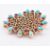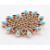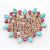 An 18ct gold multi-stone heart cluster brooch pin. The 18ct yellow gold brooch pin set with a central heart-shaped cluster of bezel set round cut gemstones including ruby, peridot, citrine, amethyst and garnet, surrounded by a halo of eleven bezel set round cut rubies interspersed by bezel set oval turquoise cabochons to hinge pin and trombone clasp verso. Marked 750 to verso together with sponsor's lozenge with 'B' inside. Measures 4.5cm x 3.7cm. All weights, measurements and sizes are approximate.