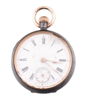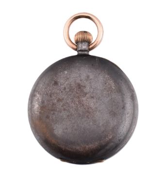 An Omega cased fob watch AF. The watch with white dial having Roman numeral number markers and a secondary dial to six o'clock. Marked for Omega to interior of case with serial number 1842817 2 G. Not ticking AF.