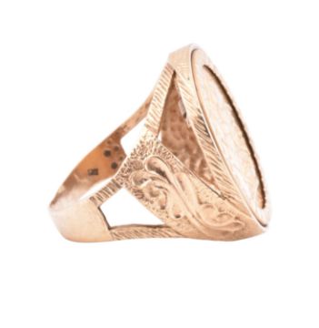 A Victorian 1893 full sovereign coin mounted in 9ct gold ring. The Victorian 1893 full sovereign coin set to a hallmarked 9ct gold ring mount with decorative, pierced shoulders to tapered shank. Ring hallmarked for London, 1984. Sponsor's mark MJ. Size V. All weights, measurements and sizes are approximate.