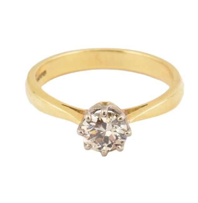 A hallmarked 18ct gold diamond solitaire ring. Hallmarked Birmingham. Estimated diamond weight 0.50ct. Weight 3.2g. Size M.