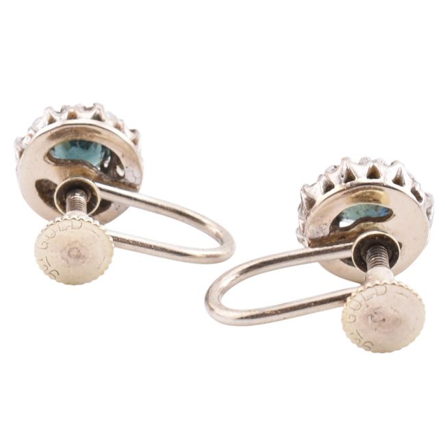 A pair of hallmarked 9ct white gold sapphire and diamond earrings. The 9ct white gold earrings set with an eight claw set round cut sapphire surrounded by a halo of eight illusion set round brilliant cut diamonds to screw-back fasteners. Marked 9ct gold to screw back. Measures 0.9cm x 0.9cm x 1.5cm. All weights, measurements and sizes are approximate.