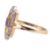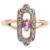 A hallmarked 9ct gold, amethyst and diamond ring. The 9ct yellow gold ring having a central claw set marquise cut amethyst surrounded by a white gold frame set with round brilliant cut diamonds to bi-furcated shoulders and polished yellow gold shank. Hallmarked for Birmingham. Sponsor's mark JMJ. Size P.5-Q. All weights, measurements and sizes are approximate.
