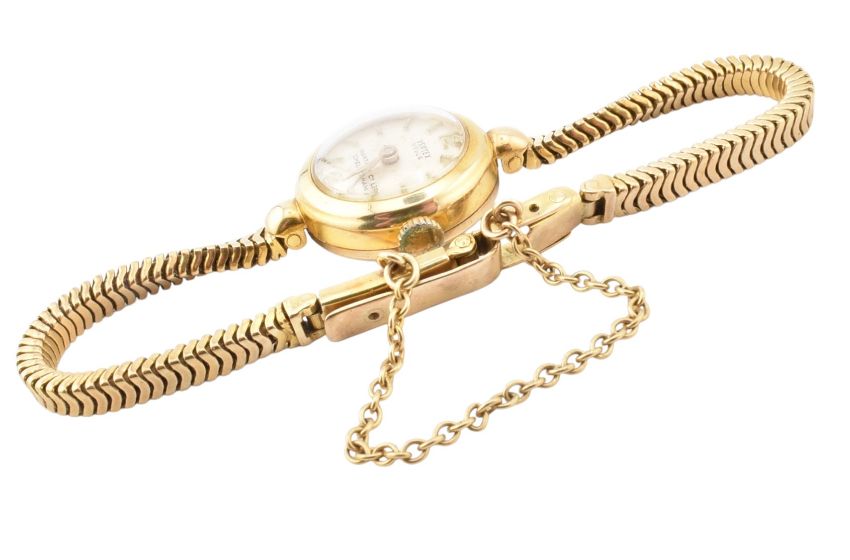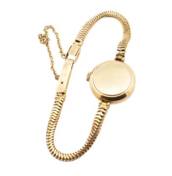 A hallmarked early 20th century ladies 9ct gold dress cocktail wristwatch. The watch marked Vertex Revue for Martin & Co Cheltenham. Set with a 9ct gold articulating strap. Total weight 14g. All weights, measurements and sizes are approximate. All watches are sold as untested, therefore without warranty.