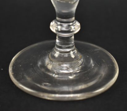 A late 18th century George III circa 1770 ale glass. The glass with funnel bowl featuring engraved hops and barlet detailing. Single central knop to stem over conical raised foot. Rough pontil to underside.