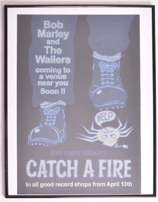 Bob Marley & The Wailers - Catch A Fire - a promotional music advertising poster issued to advertise both the forthcoming UK dates for Bob Marley later that year and 'Catch A Fire'. Framed.
