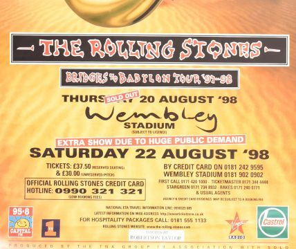Rolling Stones - Bridges to Babylon - a giant 'Banner' size poster for the Wembley Stadium gigs on the Bridges To Babylon tour - 20th and 22nd August 1998.