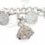 A hallmarked silver charm bracelet. The hallmarked silver curb link chain charm bracelet strung with twenty two charms to hallmarked heart padlock clasp. The charms to include a medicine box, St Christopher, mermaid, vase, penguin, various three pence coins, flamenco dancer, clam shell, band ring and high heels. Charms either hallmarked, marked 925 or test as silver excluding one white tone metal charm of a gentleman wearing a top hat. Measures 19.5cm. Total weight 102.8g. All weights, measurements and sizes are approximate.