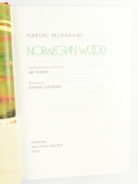 Folio Society:- Murakami, Haruki. 2022 Norwegian Wood and 2023 The Wind-Up Bird Chronicle. Each translated by Jay Rubin and illustrated by Daniel Lievano. Publisher's decorative red & black cloth bindings respectively, each in cut out decorative slipcase, minor shelfwear to the cases, otherwise smart. 8vo. (2)