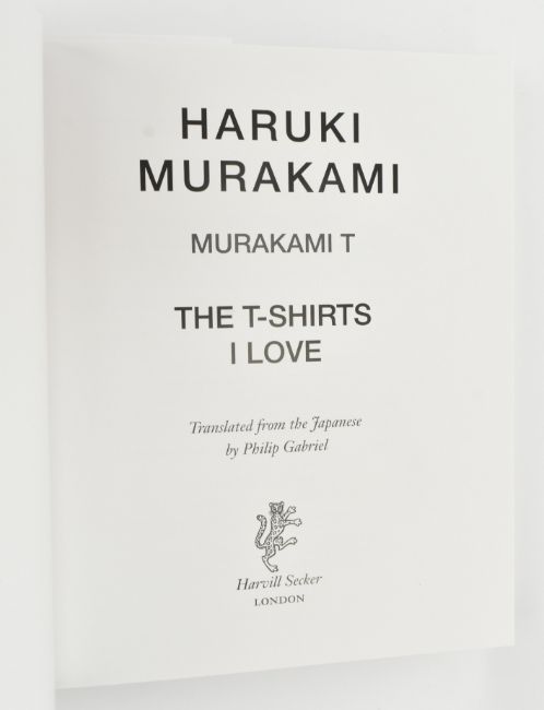 Murakami, Haruki. 2021 The T-Shirts I Love. Signed first UK edition. Harvill Secker: London, first edition, first impression. Signed by author to T shirt shaped bookplate to ffep in Japanese characters. Publisher's red cloth in unclipped dust wrapper, housed in custom cloth slipcase lettered Murakami to front board. A fine signed first edition of Murakami's photographic work examining his T shirt collection. Small 8vo. (1)
