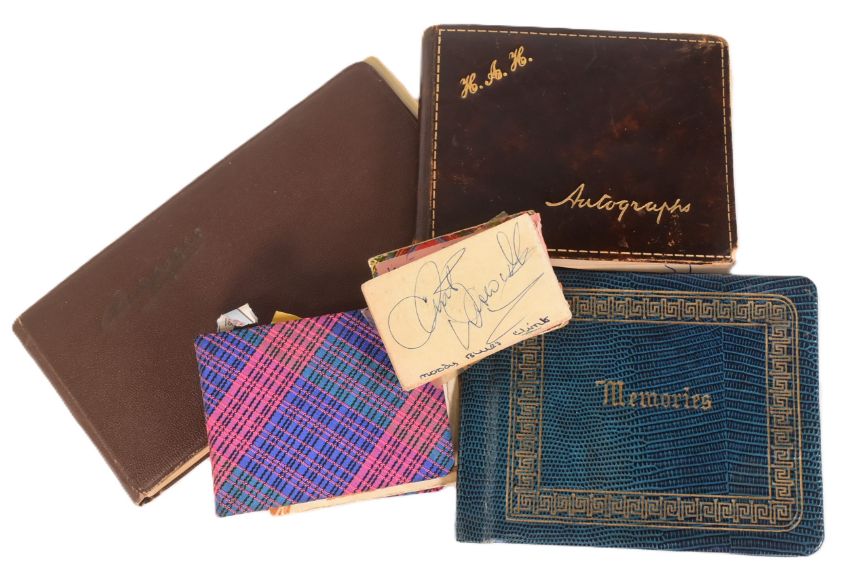 Autographs - a collection of x5 assorted autograph albums c1940s to 1960s containing various signatures of actors, singers and personalities of the period. Comprising: