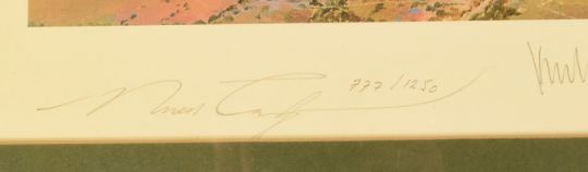 ARTISTS RE-SALE RIGHT. Buyers of the re-sold art of living artists will be charged the royalty where applicable. Currently this is 4% on any item sold at 1000 Euros or over, diminishing from 50,000 Euros. VAT is not applicable on this charge. Further details can be obtained from artistscollectingsociety.org.