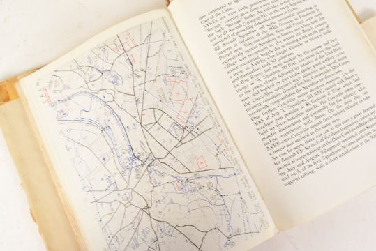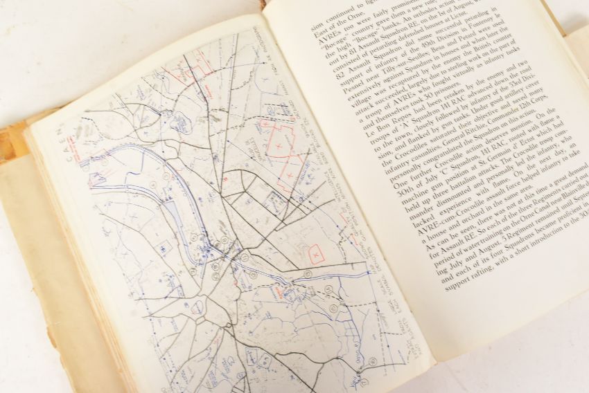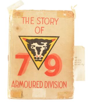 The Story of the 79th Armoured Division October 1942-June 1945 published anonymously c 1945, with “Restricted” notice on the title page, the front inside cover having coloured diagramatic maps of Northern Europe and other photographs and fold out maps throughout. The inside back cover having a handwritten note from Major-General Sir Percy Hobart.