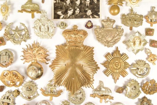 A collection of WWI First and WWII Second World War and other military cap badges to include; Scots Guards, Rifle Brigade, Royal Artillery, North Stafford Regiment, Somerset Light Infantry, The Buffs and others.