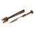 A West African Mandinka / Manding People tribal dagger having a wooden dome shaped pommel, woven leather grip and stiletto blade housed in a tooled leather scabbard with a tasselled tip. Measures approx 37cm.