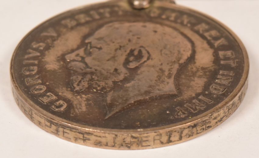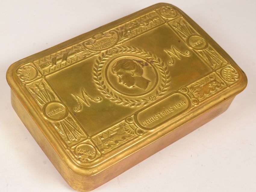 A WWI First World War medal pair awarded to one PO 14864 Pte F J Heritage of the Royal Marines Light Infantry together with a Princess Mary Christmas tin. Medals comprising British War medal and Victory medal, suspended on original ribbons.