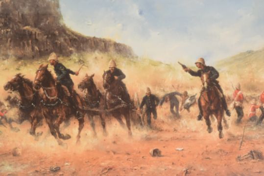 After David Cartwright (British B. 1944) - x3 Limited Edition signed David Cartwright prints comprising "Day of Destiny" The Morning of Waterloo 365/850, "Ewarts Heroic Triumph" The Capture of the Eagle of the 45th Regiment by Sergeant Charles Ewart of the Royal Scots Greys at Waterloo 634/850 and "Incident at Isandlwana" 107/850. Glazed within gilt frames and certificates. Each measuring approx 50x60cm.