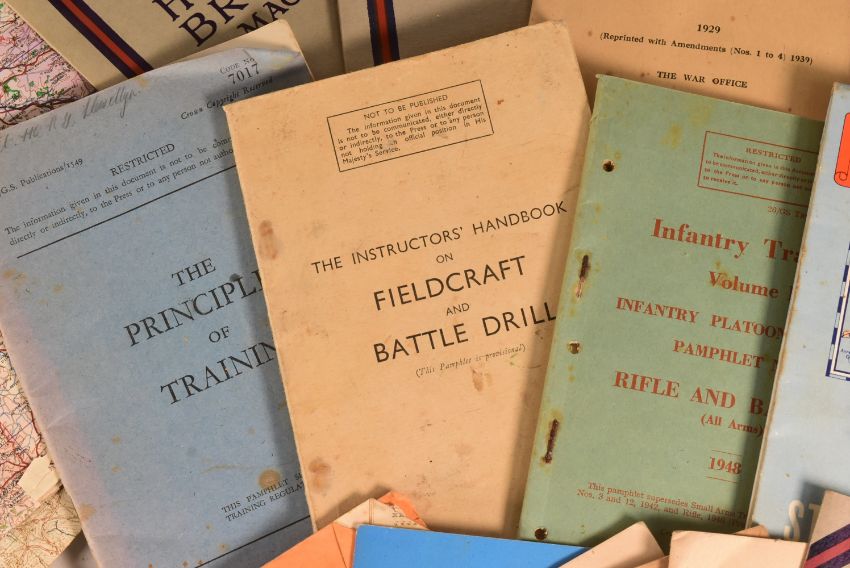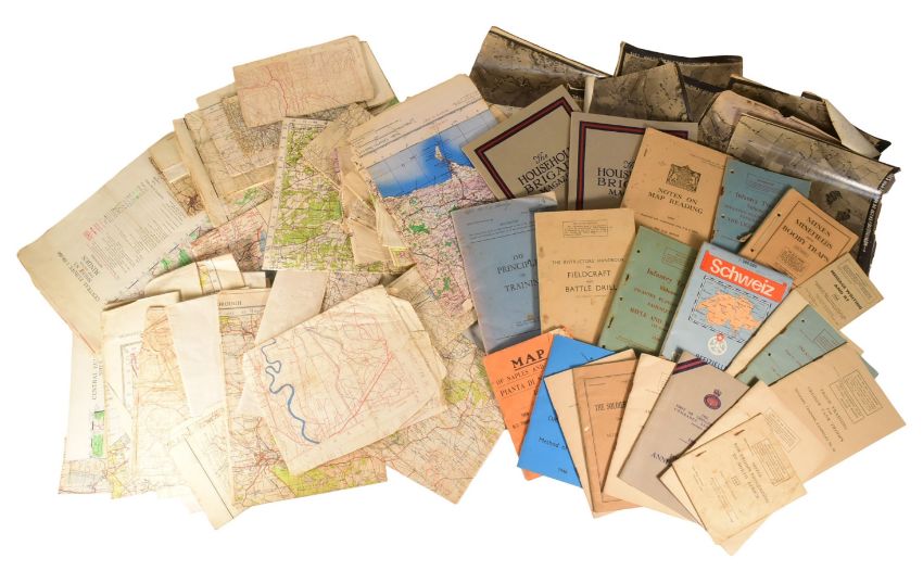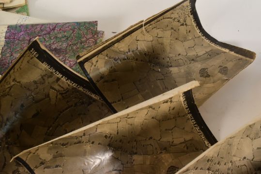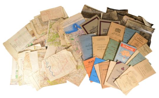 A large collection of WWII Second World War RAF Royal Air Force Ordnance Survey maps of the United Kingdom and Europe together with aerial view photographs, manuals and training booklets. Maps to include; Switzerland, Tunbridge Wells, South England, New Forest, Central Europe (Hildesheim), Hanover, Koln, Guildford, Marlborough, North Central, Wimbourne & Ringwood, Wells & Frome and more. Various conditions.