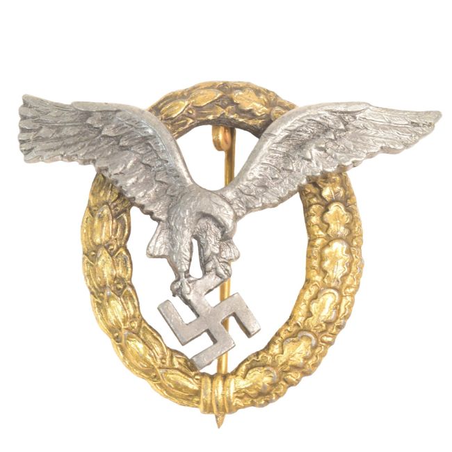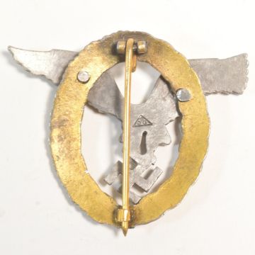 A WWII Second World War Third Reich Nazi German Luftwaffe Pilot / Observers badge. The badge depicting and Eagle in flight clutching a Swastika and surrounded by a laurel wreath.