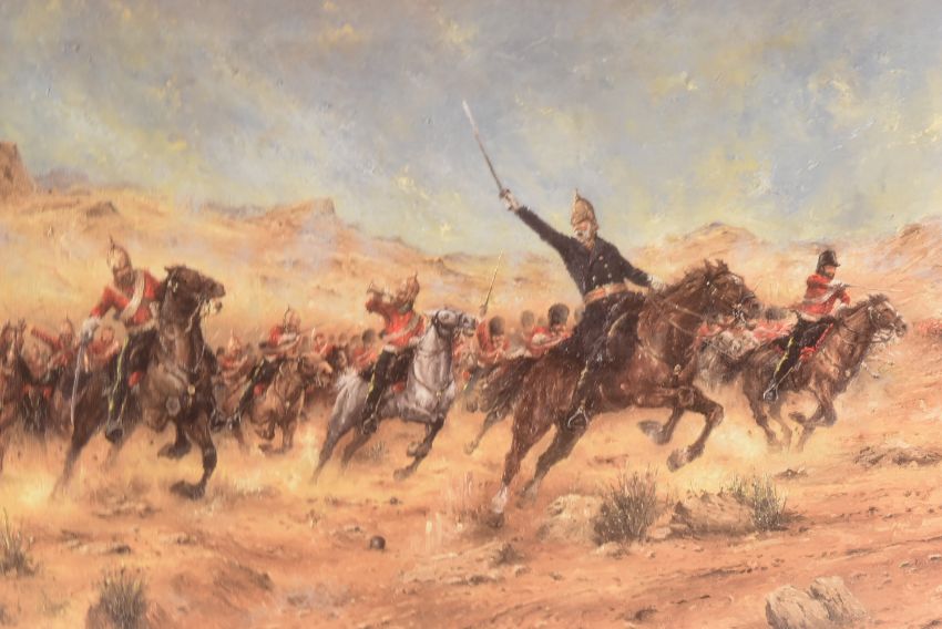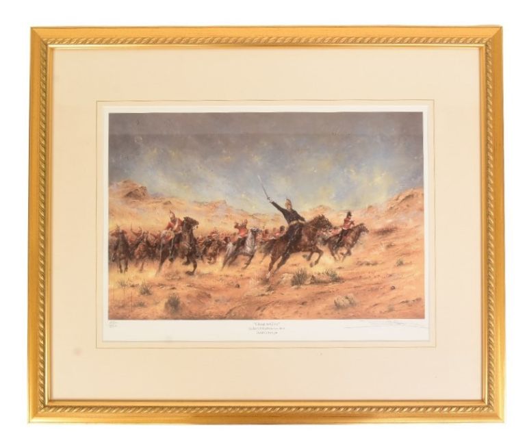 After David Cartwright (British B. 1944) - x3 Limited Edition signed David Cartwright prints comprising; "Charge to Glory" Scarlett's 300 at Balaclava 1854 25/850, "The Formidable 24th" The Defence of Rorke's Drift 22nd/23rd January 1879 104/850 and "The Chosen Men" 95th Rifles at Waterloo 1815 328/850. Glazed within gilt frames and certificates. Each measuring approx 50x60cm.