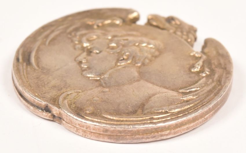 A 19th Century Victorian double sided silver metal pendant depicting a portrait of Emperor Napoleon and the L' Aiglon within an Imperial eagle circumference. Measures approx 3.4cm.